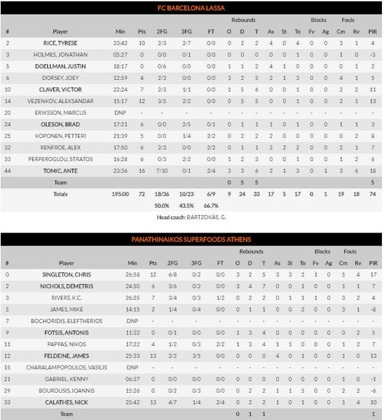 Renfroe sentenciaría el partido con un grandísimo mate en contraataque (68-57) que haría vibrar al Palau Blaugrana, todo después de otra gran acción defensiva de los catalanes. El encuentro ya no tendría más historia y acabaría 72-57. Así, el Barça se llevaba una importante victoria después de una mala racha. Las claves serían la gran defensa de los de Bartzokas (dejaron a sus rivales en un 4 de 26 desde el 6,75) y el dominio de Tomic bajo los aros (16 pts 8 reb).