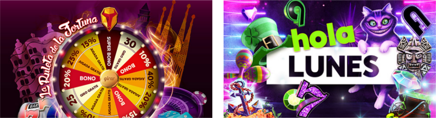 - Recibe entre 10 y 100 Giros Gratis haciendo recargas desde 20 € los lunes.