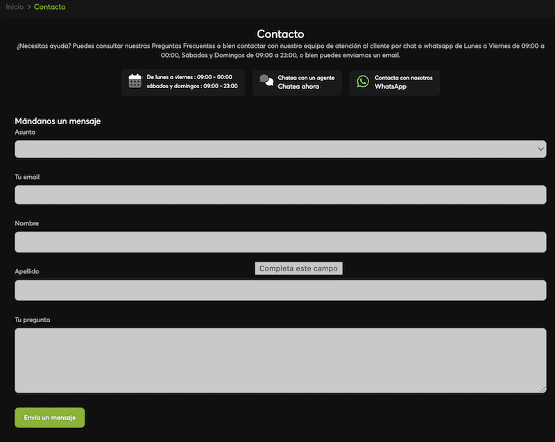 - Hora de contactar con soporte: Si estás seguro de que ninguno de los pasos anteriores solucionará tu problema, lo mejor es que entres en contacto con el equipo de soporte de bet777 y les expongas tu caso.