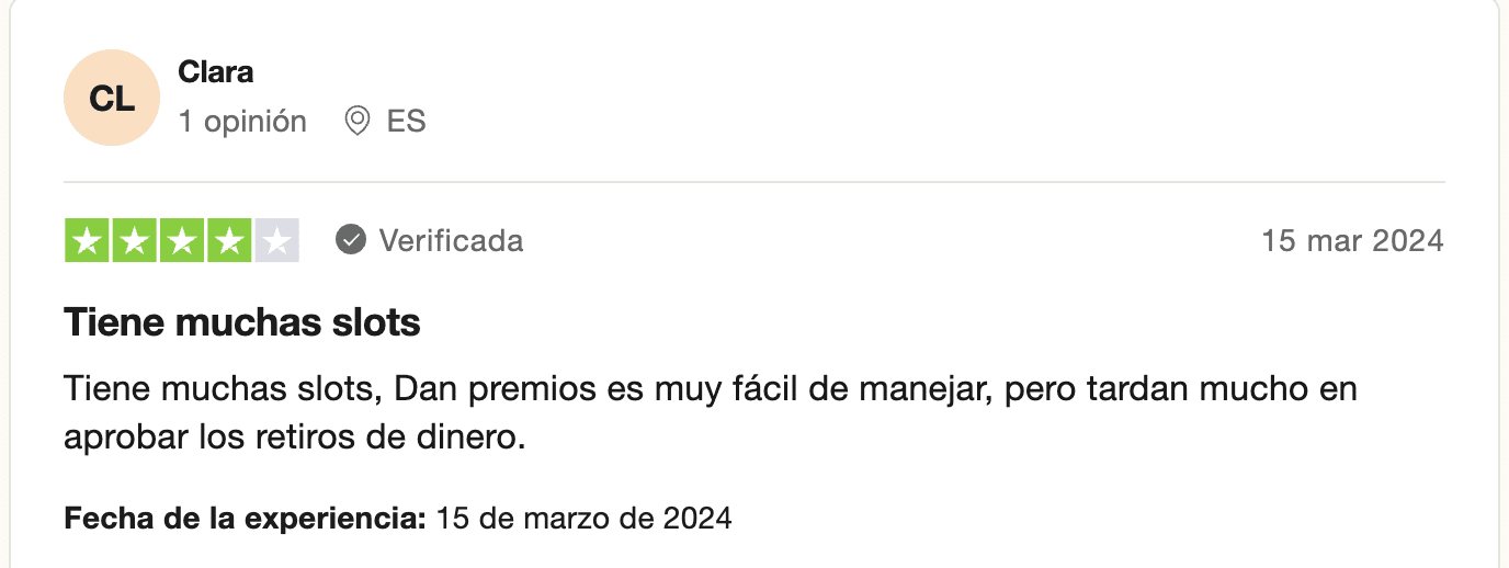 La calidad y el buen funcionamiento de los métodos de pago disponibles y la cantidad de slots que ofrece son dos puntos positivos que sus clientes valoran de forma muy positiva.
