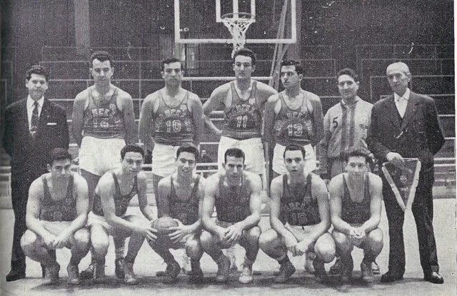 La semana pasada recibí con entusiasmo la llamada de Jordi Bonareu, histórico jugador de los años 50 (anotando en la foto superior con el nº14), acompañada poco después, de una carta del F.C. Barcelona en la que me invitaban al acto conmemorativo del 60º aniversario del primer título y doblete del equipo blaugrana en la liga española de baloncesto. El acto reunirá a todos los supervivientes del equipo, también árbitros de la época com Santi Fernández o periodistas como Justo Conde, y se les entregará una réplica de una camiseta de aquella temporada con sus nombres bordados.