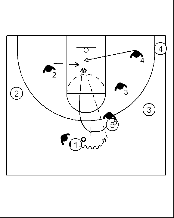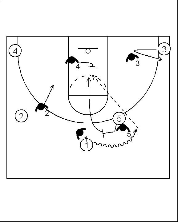Como se ve en el gráfico 4, cuando sólo disponían de un jugador en lado contrario (en este caso el ala pívot), quién siempre defendía el roll era el jugador de la esquina del lado balón. Si en la primera situación Tomic provocó falta a Rudy, en ésta acabó con mate de Dorsey ya que Darden llegó tarde y físicamente no pudo frenar al pívot azulgrana. A pesar de eso Marcelinho también buscó en una ocasión a Nachbar para que se jugara un aclarado pero el esloveno no logró finalizar con canasta.