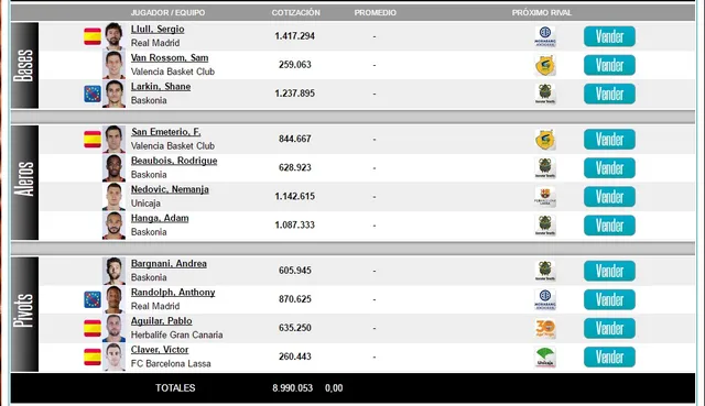 Hay 6 jugadores de Baskonia y Madrid , que en principio aseguran el pase a semis. 2 de Valencia, 1 de Canarias, 1 de Unicaja y 1 de Barça. Gane quien gane de los cuatro aseguro jugar con 11 en semis.
