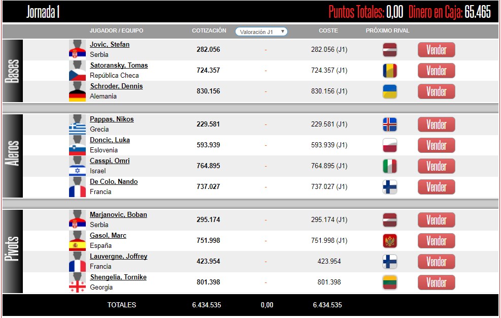 -Ioannis Bourousis-557.321. No viene de su mejor año y su preparación ha sido discreta, pero empieza contra Islandia. Además todos sabemos de lo que es capaz si se centra. Muy buen precio para lo que puede dar.