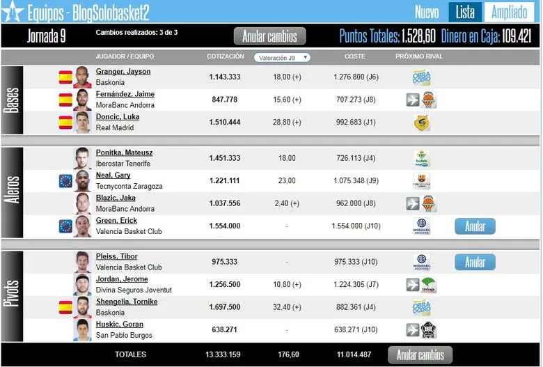 - Mateusz Ponitka (Iberostar Tenerife): 1.451.333. Rival: Real Betis Energía Plus. Motivos: Quinto mejor jugador y rival asequible. Broker: 51,83/20,73/-10,37