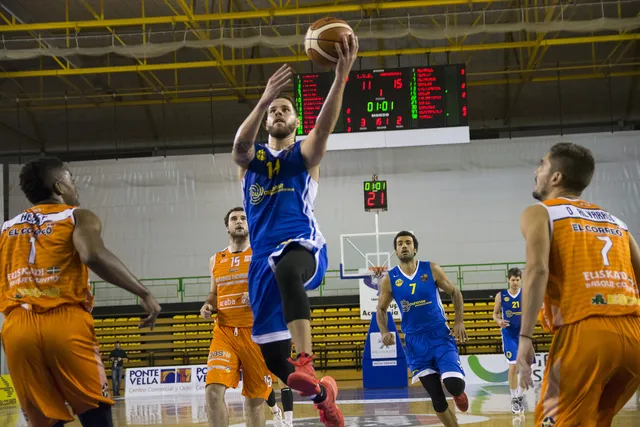 OURENSE ROZÓ LA HEROICA El último cuarto comenzaba con una canasta tras gancho de Rowley para poner la máxima del partido a favor de los suyos hasta ese momento (50-68) y tumbar los ánimos del público asistente al Paco Paz. Contra todo pronóstico, los locales, espoleados por un triple de Martín Rodríguez y posterior canasta de Fran Guerra, conseguían no descolgarse del partido. Con un parcial de 15-2 culminado con un triple al contraataque de Díaz apretaban al máximo el marcador (65-69). Ahí entraron en juego los nervios. Una serie de imprecisiones por parte de ambos conjuntos nos dejaban un final de máxima igualdad. Dos tiros libres de Hearst ponían el 71-74 a falta de 9 segundos y una posesión en la que Christian Díaz se botó el balón contra los pies dejando la victoria en bandeja al conjunto vasco. Al final 71-76 y sexta victoria de la temporada para los visitantes.