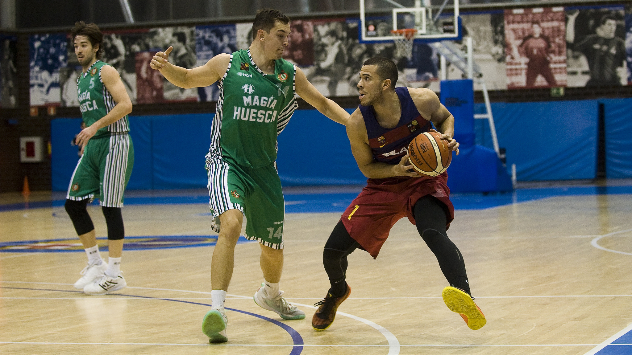 CUARTO TRIUNFO CONSECUTIVO DEL BARÇA “B”. Los chicos de Julbe suman su cuarta victoria seguida consolidando así su trayectoria positiva de las últimas semanas. Los locales son ahora mismo un equipo temible para cualquier rival y han abandonado con esta gran racha los dos últimos puestos de la clasificación. El Barça “B” perderá pocos partidos hasta final de temporada. El choque ha empezado igualado pero un parcial de 18-3 a mediados del segundo periodo ha abierto la primera gran brecha (44-31). La segunda parte ha tenido claro color blaugrana llegando a tener una máxima ventaja de 21 puntos (70-49). Huesca nunca ha arrojado la toalla y lo ha intentado hasta el final pero el acierto local en el tiro libre (30 metidos de ¡37!) intentados) ha imposibilitado cualquier reacción de Huesca.