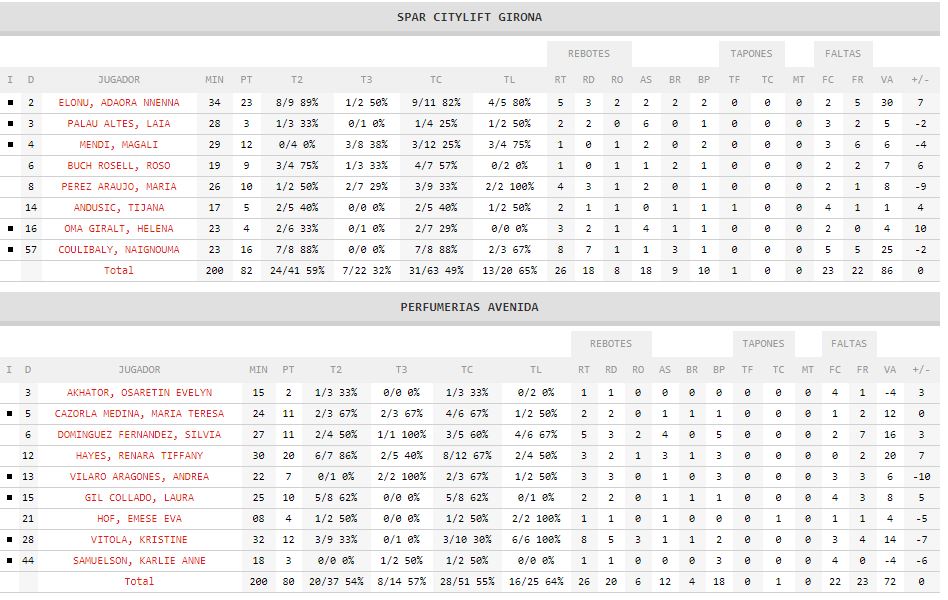 En el segundo periodo, el trabajo constante de las visitantes, junto con la presencia en la zona de Laura Gil y Vitola, hizo que Perfumerías Avenida lograra empatar el encuentro antes de la media parte. De hecho, incluso se llegaron a poner por delante y la reacción gerundense no apareció: la defensa exhibida en el primer cuarto parecía haberse diluido y las castellanas aprovecharon para hincar el diente (39-39 al descanso).