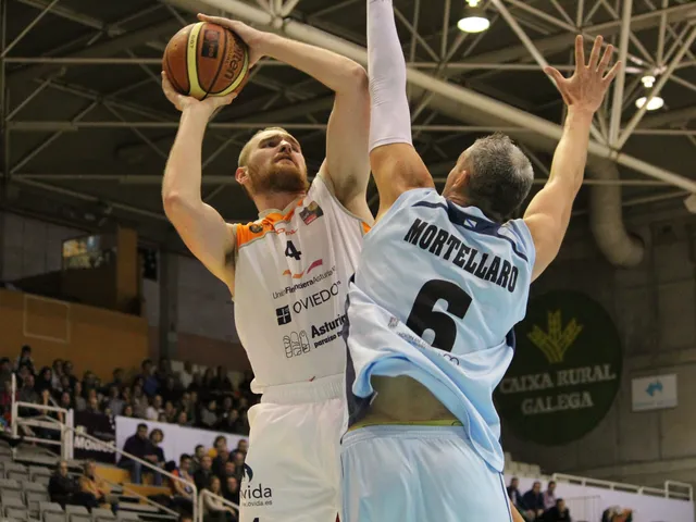 TIRA Y AFLOJA La primera mitad se caracterizó por la irregularidad de ambos conjuntos. Empezó muy bien el Breogán, guiado por la mano de Dani López, y su ventaja llegó a superar los diez puntos. Las faltas dejaron fuera de combate a Víctor Pérez y Osvaldas Matulionis a las primeras de cambio y el que sacó tajada del recambio fue el conjunto ovetense: apareció Álvaro Muñoz y puso una igualdad que se mantendría hasta el paso por vestuarios. El segundo cuarto dejó un bonito duelo de bases: la dirección de Ferrán Bassas frente al acierto anotador de un Sergio Sánchez que, ante la ausencia de Adrián Chapela, disputó sus mejores minutos como celeste.