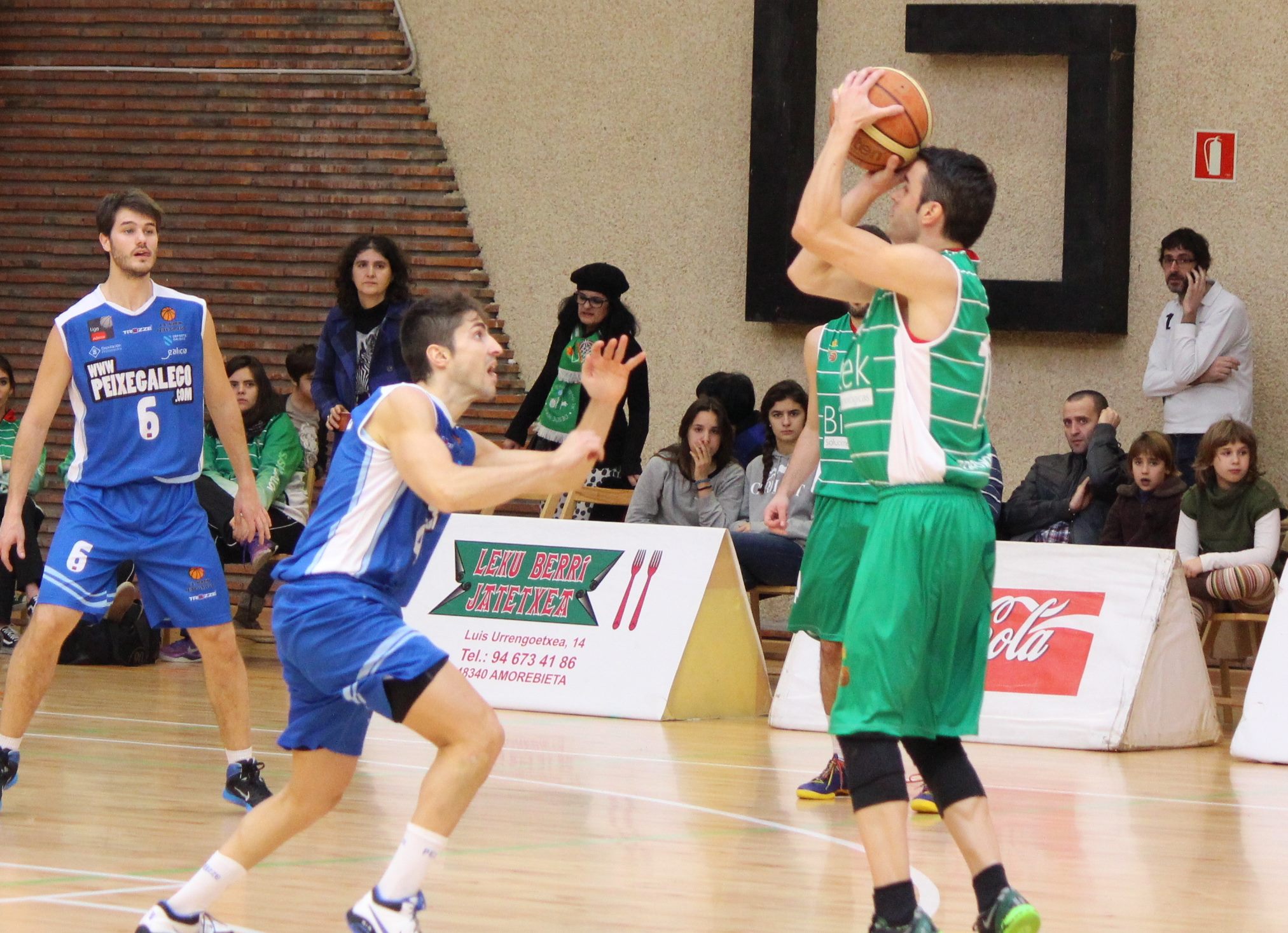 Los de Amorebieta dominaron de arriba a abajo la primera parte del choque, alcanzando rentas de hasta 17 tantos, aunque los gallegos maquillaron un tanto los guarismos para alcanzar el descanso con 43-30. Un triple de Lorenzo en el inicio de la reanudación hacía abrir de nuevo brecha entre ambos conjuntos, pero un parcial de 0-15 a favor de los visitantes, liderado por Manuel Ferreiro, Darío Suárez y Joseba Aramburu, hizo que fuera posible un cambio de liderato. Se llegó al último acto con 53-56 para PeixeGalego, que incluso estiró la renta hasta los 9 a falta de 8 minutos para el final (53-62, min. 32). Se encendieron las alarmas en el Larrea. Tuvo que salir al rescate el héroe Toni Lorenzo, con el recién llegado Arturo Cruz como perfecto escudero con sus penetraciones, para liderar la remontada local, que fue consumada por Ibon Carreto y su acierto desde el tiro libre. Al final, victoria local por 81-72.