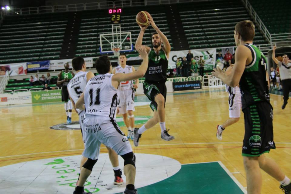Remontada vasca tras el descanso. En la vuelta de los vestuarios los de casa ampliaron aun más la ventaja llegando a mandar por 19 puntos (46-27 a 8 minutos del final del 3er cuarto), pero como si se tratara de un calco de lo sucedido en los últimos partidos del Cáceres, estos se volvieron a dejar remontar repitiendo errores pasados y rememorando las malas sensaciones de perder una buena renta, aunque en esta ocasión ciertamente no se vio peligrar tantísimo el partido como si sucedió en anteriores citas. Viéndolo ya todo casi perdido, Sanmic empezó a morder en defensa y con Mayer y Garret haciéndose fuertes por dentro aprovechándose de lo cargados de faltas que a estas alturas estaban ya los interiores del Cáceres, se hicieron con las riendas del partido y encendieron todas las alarmas en los locales que vieron como a 8 minutos del final sólo estaban 6 arriba (46-40).