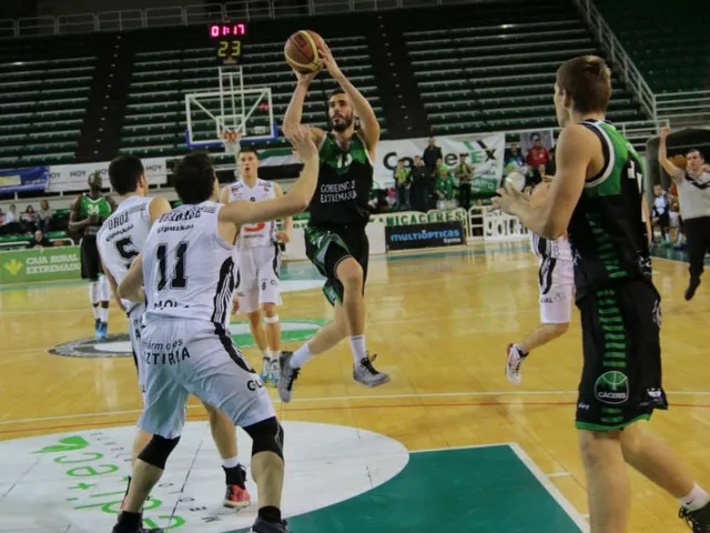 Segundo cuarto verdinegro. En la reanudación del partido las rotaciones en ambos equipos le sentaron mucho mejor al Cáceres, que gracias a una mejor combinación en ataque y a una mayor actividad en defensa cogió cierta ventaja gracias a un parcial de 11-0. Con Nguema y Corrales al mando de las operaciones, Parejo y Añaterve acertados por fuera, y Jakstas y Kasse haciendo daño por dentro, los locales parecía que podían romper el partido.