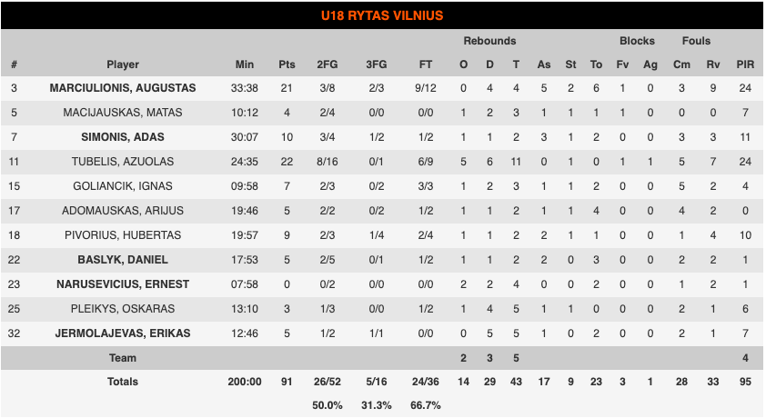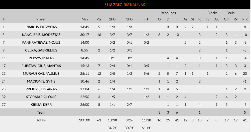 Otros destacados: Paulius Murauskas – 20 de valoración (12 puntos, 7 rebotes y 1 asistencia)