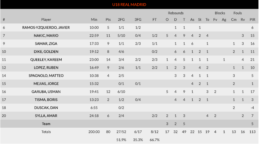 Otros destacados: Usman Garuba – (12 puntos y 9 rebotes)