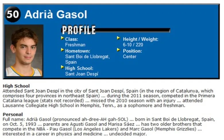 Mucho se ha escrito del pequeño de los Gasol y la pesada carga que supone para él tener dos hermanos superestrellas. Como para aburrir el baloncesto. Quizá por esto empezó tarde. Ahora parece que la presión está superada y el gusanillo del baloncesto le va penetrando. En esta situación, lo que yo pienso es que, más que nunca, lo que necesita Adrià en este proceso, es tener los focos lejos de él y encontrar su lugar donde formarse y aprender pero en un nivel adecuado a sus condiciones actuales, lejos de la presión mediática, en un lugar que no le venga grande y le supere. Quizá por esto este verano ha seguido dando pasos en su formación asistiendo, lejos de España y de los EEUU, a un campus organizado por el mítico Gregor Fucka en Eslovenia y donde también imparte doctrina Rodrigo de la Fuente. Seguramente buscaba tranquilidad pero… el mundo digital no tiene fronteras y ya se puede ver por las redes un vídeo colgado por la web Sport-TV, donde se le ve entrenar y donde Adrià explica su experiencia americana en UCLA, su ilusión de futuro y su intención de seguir creciendo y progresando para mejorar y llegar lo más lejos posible. Este es el camino.