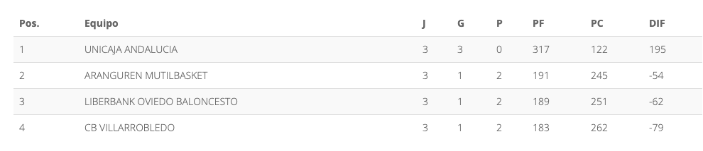 | Grupo C: MOVISTAR ESTUDIANTES 79-70 OBRADOIRO PELETEIRO JOVENTUT BADALONA 92-70 FUNDACIÓN 5+11 |