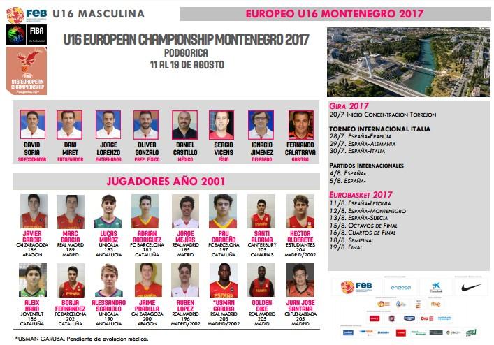 Después de la U19M, U20F, U20M, U19F, U15F, U18M, U16F y U18F, la selección de las categorías inferiores encargada de cerrar el verano será la U16 masculina con el Europeo de Podgorica (Montenegro) del 11 al 19 de agosto como reto. David Soria volverá a ser el encargado de dirigir al combinado nacional y estará asistido en el banquillo por Dani Miret y Jorge Lorenzo.