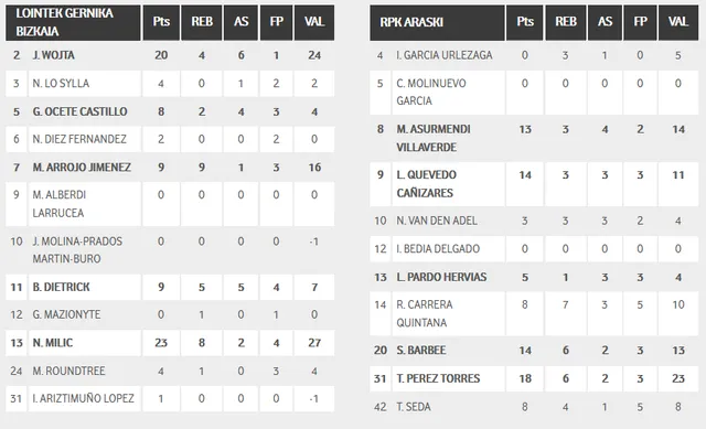 El comienzo de esta Copa de la Reina no podía haber dado más espectáculo. Tras una prórroga, RPK Araski se ha clasificado para la semifinal de una Copa de la Reina por segunda vez en su historia al vencer a Lointek Gernika, 80-83, en un partido en el que estuvieron por delante en mayor parte, pero en el que tuvieron que dar el máximo tras la reacción de Gernika. Nikolina Milic fue la jugadora más destacada del encuentro con 23 puntos, 8 rebotes y 2 asistencias.