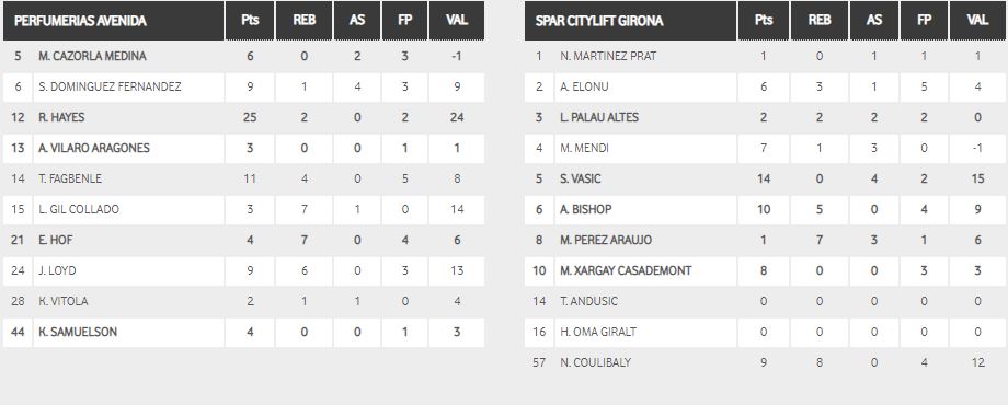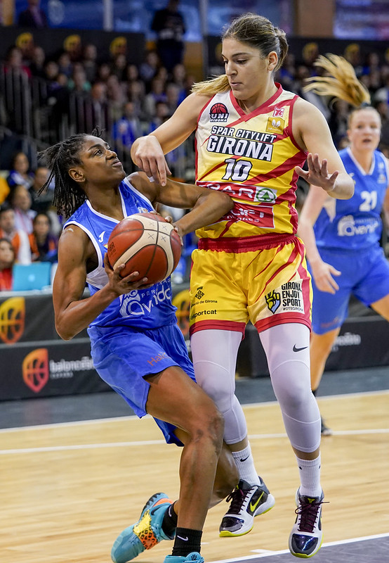 La lucha estaba servida con los innumerables precedentes entre ambos equipos. Ya viene siendo habitual ver a los dos conjuntos en todas las finales, pero la incertidumbre sobre quién ganará es siempre la misma. Y más si cabe tras los últimos títulos logrados por Spar Citylift Girona. La finalísima empezó de cara para las catalanas, que a través de la habilidad de Mendi se adelantó. No obstante, fue la única vez que estuvieron por delante, pues poco tardó Hayes en exhibir su calidad y en llevar en volandas al Multiusos Sánchez Paraíso. Cinco puntos consecutivos de la máxima anotadora en semifinales dieron paso a varios errores no forzados por parte de los dos bloques, con bandejas sencillas que no entraron. Con este panorama, Perfumerías Avenida repitió como si de un mantra se tratara la jugada de cuernos, en la que las dos interiores subían a bloquear. Así lograron una ventaja al término de los primeros diez minutos, que no fue tanta por Sonja Vasic, autora de otros cinco puntos para UniGirona (22-17).