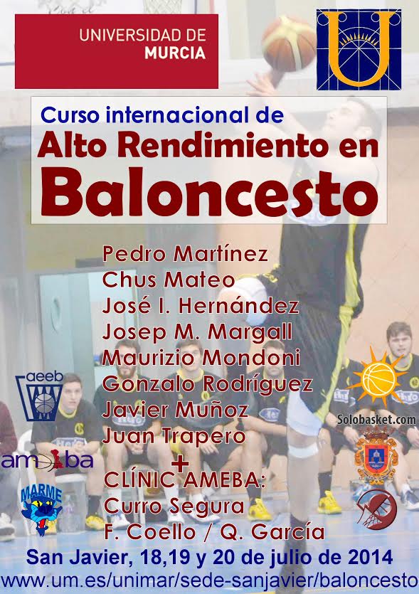 Los próximos días 18, 19 y 20 de julio de 2014 tendrá lugar la 4ª edición del Curso Internacional de Alto Rendimiento en Baloncesto que organiza la Universidad de Murcia y con el que colabora Solobasket.com.