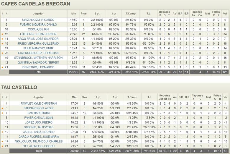 Cafés Candelas Breogán vs TAU Castelló (97-69)