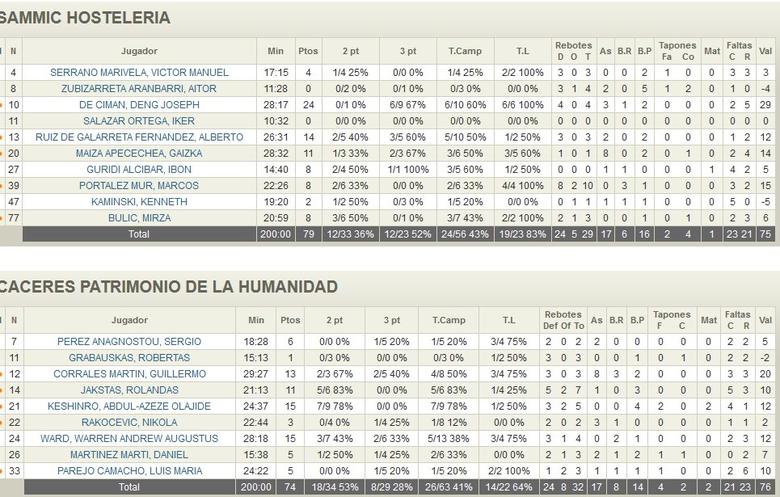 Sammic Hostelería vs Cáceres P. Humanidad (79-74)