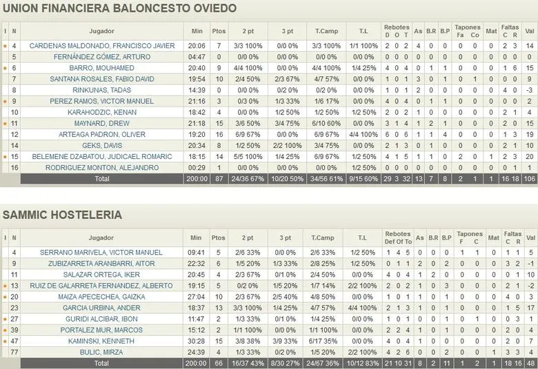 OVIEDO NO TROPIEZA DOS VECES en la misma piedra. En el último cuarto los de Carles Marco mantuvieron el nivel mostrado en el primer y tercer cuarto y no dieron opción de entrar en el partido a los de Iraurgi. Cargando una y otra vez el juego interior sobre Arteaga y aprovechando los espacios que esto permitía al resto, Oviedo siguió construyendo una sólida victoria donde las ventajas no pararon de aumentar. Arteaga daba un clínic de juego de espaldas al aro cada vez que recibía, Belemene y Víctor Pérez se desvirgaban desde el triple y hasta el joven canterano Alejandro Rodríguez anotaba desde el 4,60 para que la fiesta fuese completa en Pumarín (87-66). Segunda victoria que consolida un nuevo buen arranque de los asturianos.