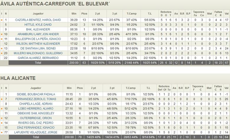 El HLA Alicante cierra con dos triunfos su intensa semana de viaje por la península. Se impuso a un Ávila Auténtica que fue a remolque durante todo el partido y que se vio superado por un Alicante muy acertado desde el perímetro. Hasta 14 triples anotaban los alicantinos con unos acertados Tomás Fernández (20p, 6r) y Álvaro Lobo (16p), ocho triples entre ambos. Ávila dominaba el rebote con Sidao Santana (18p, 9r) como claro referente interior pero no pudieron imponerse a un Alicante que tuvo también una destacada labor en el trabajo de Díaz (16p, 6r) y un Lafuente (5p, 6r) ya más acoplado al equipo. Aramburu acumuló imprecisiones que le dejaban en guarismos inferiores a los que estaba firmando en jornadas anteriores y solo Cazorla (13p, 6r, 5a) acompañaba a Santana en la generación y aportación. El conjunto alicantino aprovechó el pinchazo de Granada para consolidar su segunda plaza a una sola victoria del líder Albacete Basket.