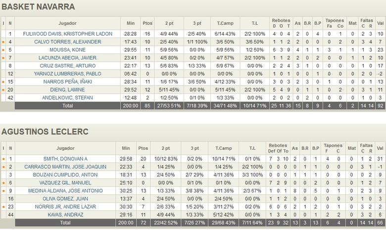 El segundo cuarto bajó las revoluciones de juego, se jugaba más a lo que querían los leoneses pero la ventaja apenas se reducía, no se notaba ni la baja de Adrian García por molestias en un tobillo, ni la poca producción de Kris Davis, hoy suplente y máximo anotador navarro del partido con 16 puntos, 49-35 al descanso.