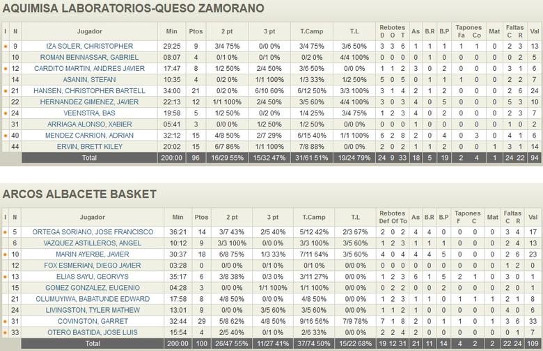 El Quesos Zamorano, a pesar de ser farolillo rojo de la clasificación jugó un gran partido con un Hansen tirando de su equipo durante 34 minutos con (21 PT, 4 RT, 2 AS y 24 VA).