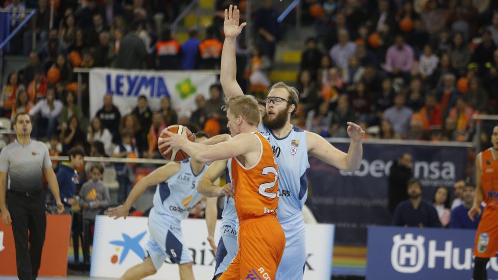 DÍA GRANDE Unas cuatro mil gargantas pusieron el sonido ambiente al derbi, al partido grande de la temporada para Leyma Coruña. Cerca de dos mil lucenses se desplazaron a la ciudad herculina el día de la Constitución para animar a su Breogán, un Breogán que se vio desbordado por la intensidad de un equipo local hipermotivado después de la derrota sufrida en Pumarín. Así, de inicio, un parcial de 12-2 estableció una renta de diez puntos favorable a los de Tito Díaz, liderados, una vez más, por un imparable Dago Peña. Acabó el primer acto con 28-19 para el Básquet Coruña y con un Breogán fallón desde el triple (0/5) y en las entregas (6 pérdidas) y que sólo conseguía sobrevivir gracias a la solvencia de sus jugadores desde la línea de tiros libres (9/9).