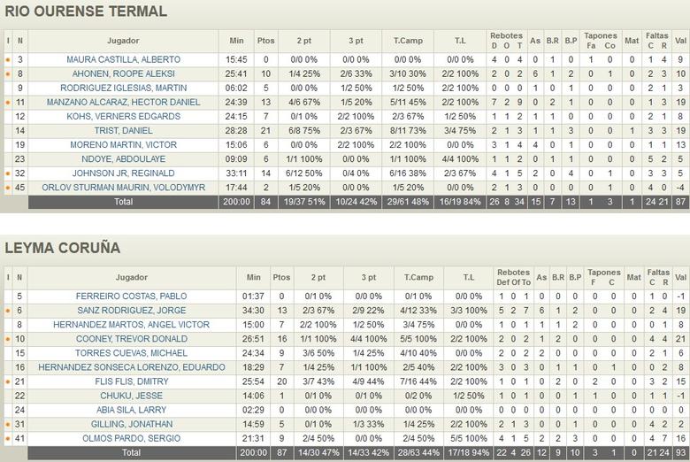 CORUÑA DECIDE UN PARTIDO IGUALADO Todo ello ante el empuje de un Leyma Coruña que tuvo que buscar nuevas vías de anotación y que llegó a colocarse a rueda de la mano de todo un ex de la casa como era el ruso Dmitry Flis (84-83). La lesión de Sergio Olmos a un par de minutos para el final fue un jarro de agua fría para los intereses visitantes pero, con todo en juego, a los visitantes no les tembló la mano desde el 4,60 para colocarse por delante a un minuto de final. Llegó a tener el COB doble tiro exterior para forzar la prórroga pero el triple de Manzano primero y el de Johnson después no encontraron fortuna entregando definitivamente el triunfo a un Leyma que respiraba aliviado (84-87).
