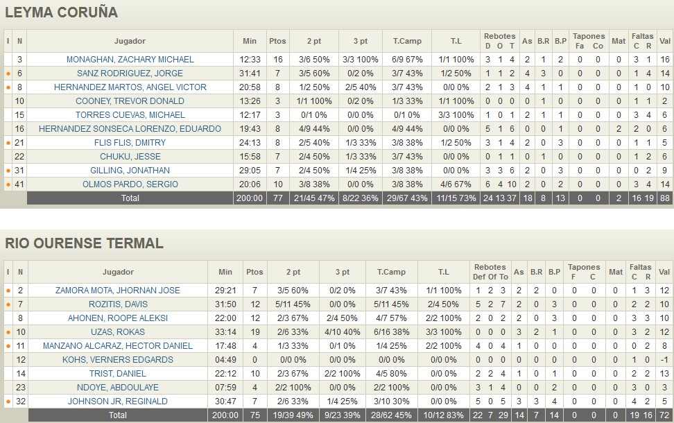 MR. MIRACLE. No pudo culminar la remontada el Leyma a la salida del cuarto parcial. El COB no sólo se resistía a las embestidas y locales sino que volvía a dominar el ritmo de juego y aumentaba su renta. A falta de 3:25 para la conclusión del encuentro, Mike Torres perdía un balón y a Sergio Olmos (que pasaba por allí) le cayó una polémica antideportiva por cortar un contraataque. Uzas anotaba los dos tiros libres y ponía una renta de 9 puntos (63-72) que parecía insalvable, más si cabe teniendo en cuenta que los ourensanos conservaban la posesión. Pero sacó ahí el Leyma Coruña todo su carácter y, apoyado por su hoy numerosa y ruidosa afición, obró el milagro. El COB siguió apostando por ataques largos que no le llevaron a ninguna parte y el Leyma, a base de una encomiable actitud defensiva, tiros libres (aprovechando que los visitantes estaban en bonus) de Olmos y Flis y el momento de efervescencia de un Zach Monaghan que puso patas arriba el pabellón con 9 puntos en un suspiro (incluida una espectacular acción de 3+1), endosó un parcial de 13-0 a su rival en 180 segundos de baloncesto-magia que los presentes en las gradas de Riazor no olvidaremos en mucho tiempo. Aún anotó Ahonen otro gran triple que daba esperanzas a los visitantes pero un tiro libre anotado por Jorge Sanz y una gran defensa de Flis sobre el propio Ahonen en la última acción del partido permitieron que la victoria se quedara en casa.