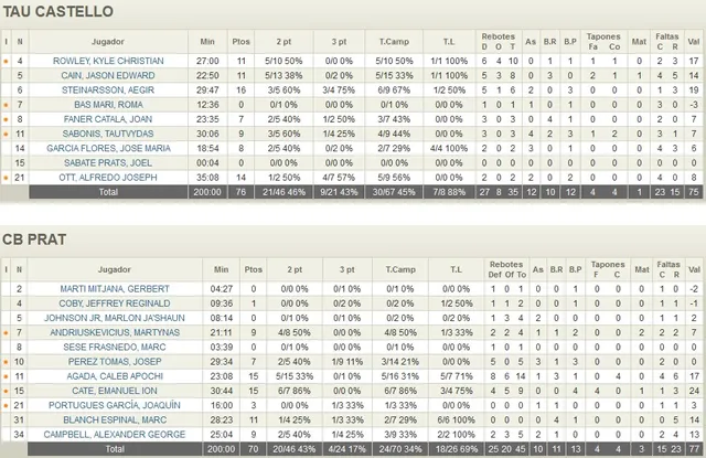PRAT INTENTÓ LA REMONTADA En estos compases, los de La Plana sabían mantener una cómoda renta, siempre por encima de los 10 puntos. El CB Prat, en el que sólo su pívot Cate hacía algo destacable, como veía que la cosa no pintaba bien y les hacían daño con penetraciones y los pívots locales, pidió tiempo muerto y cambió a defensa a zona. Esta variante le trastocó a los castellonenses, que muy pronto tuvieron que pedir su correspondiente tiempo muerto para reorganizar sus ataques. Empezó a haber cierta intranquilidad, porque los catalanes se acercaron peligrosamente (72-67 a 2:10 del final). En el siguiente ataque tampoco se encontró una buena opción y a continuación el CB Prat sacó una jugada de tres puntos (72-70), pero llegó Steinarsson en plan salvador para arrancar hacia el aro y lograr una meritoria canasta. Luego Cain estuvo pillo para recoger un balón suelto cerca del aro y anotar nuevamente, con lo que el choque quedaba casi sentenciado con 76-70 en el luminoso y sólo 36 segundos por delante. Por suerte, en las siguientes posesiones los visitantes no anduvieron finos y se certificó uno de los triunfos más meritorios de la temporada.
