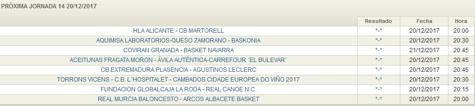 Haz click en el resultado para acceder a la ESTADÍSTICA del partido