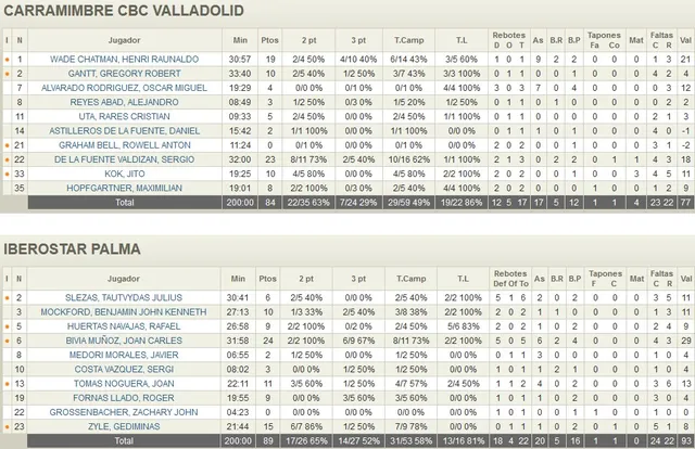 PRIMERA PARTE DE MANUAL Y en poco o nada afectó este día de locos a la plantilla de Iberostar, los que saltaron al parquet completamente fuera de toda concentración fueron los jugadores vallisoletanos. La defensa sin intensidad y con más de un desajuste, completamente irreconocible en la escuadra dirigida por Paco García, permitía a Palma anotar la nada desdeñable suma de 57 puntos en la primera parte. Carles Biviá mostraba a los suyos cual era la receta para hacer daño al rival. Sus 5/6 en tiros de tres, sumados a los anotados por Kennet, Costa, Tomás y Fornas dejaba en esta faceta de la tabla de estadísticas un demoledor 11/14. El capitán carmesí, Sergio de la Fuente, con 16 punto en su casillero en esta primera mitad, tiraba de los suyos impidiendo que el partido se rompiera definitivamente.