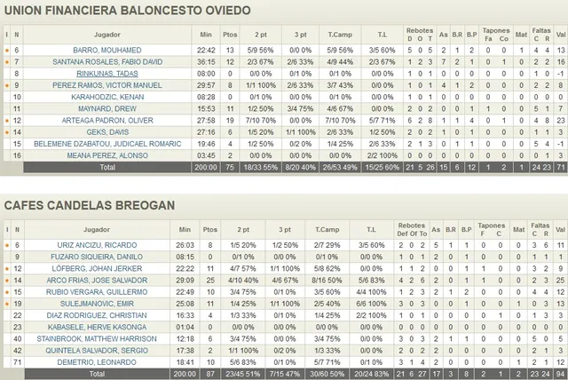 MVP: Salva Arco (25 de Val.). Fantástico el partido del alero visitante. Dominó desde la anotación (25 puntos) con grandes porcentajes de 3 y de TL (66% y 83%) y ayudó y mucho en el rebote (hasta 6 rechaces logró, 2 de ellos en ataque). Pero lo que más impresionó de su actuación fue la capacidad para echarse el equipo a la espalda cuando más lo necesitaba. En el tercer cuarto cuando Oviedo se quería marchar en el marcador lograba 10 puntos casi consecutios y en los últimos 5 min. de partido, cuando todo estaba por decidir, anotaba otros 7 puntos que terminarían por finiquitar el partido. Un líder ejerciendo de líder.