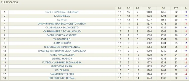 RESULTADOS JORNADA 17 LEB ORO