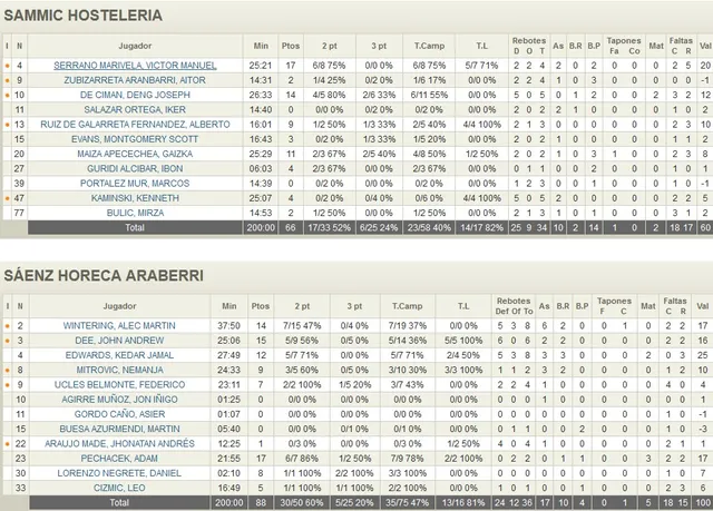 Con un gran ambiente en sus gradas, el derbi vasco entre Sammic Hostelería y Sáenz-Horeca Araberri se saldó con un triunfo visitante sustentado en el gran juego de equipo mostrado por los de Antonio Pérez durante los 40 minutos del encuentro. Un choque en el que fueron sumando poco a poco para ir ampliando las diferencias del 13-17 inicial hasta el 27-34 con el que mirar con optimismo a la segunda parte del partido. Una vez ahí, y con viendo de cola en su juego, los vitorianos supieron esperar el momento perfecto para poder dar un zarpazo al encuentro a lo largo de un último periodo en el que protagonizaron sus mejores minutos de la temporada (66-88).