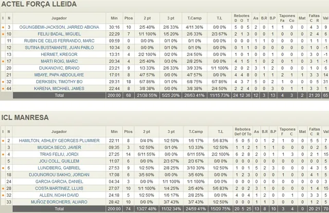 Con un parcial inicial de 10-1 a favor de los locales, la clasificación copera del ICL Manresa parecía estar en serio peligro pero no tardó en reaccionar el conjunto de Aleix Duran de la mano de un serio Lluis Costa que brilló desde la dirección para recuperar la calma al final del primer cuarto (18-16). Eso sí, los visitantes necesitaron de 15 minutos para poder igualar definitivamente el choque antes de asumir el mando a través de pequeñas rentas ante un Actel Força Lleida muy serio y que siempre supo encontrar el camino a la réplica (31-36). Por más que lo intentaban los visitantes, el Actel Força Lleida no daba su brazo a torcer llegando a igualar el partido y a verse incluso por delante en algunos momentos del tercer cuarto lo que avivó el deseo de victoria de un ICL Manresa que decidió dar un golpe sobre la mesa. Con buena mano desde el tiro exterior, los manresanos no tardaron en dar el paso definitivo hacia un triunfo que bien valió su clasificación para la Copa Princesa (68-74).