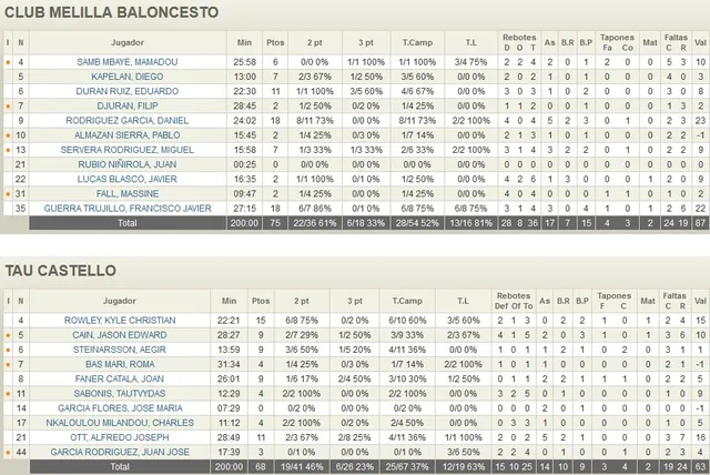 BUEN INICIO DE AÑO: Lo mejor del partido para los locales fue el resultado ya que el partido discurrió con un tono gris que no permitió ver la mejor cara de los dos conjuntos. La victoria de hoy permite empezar al Melilla Baloncesto 2018 totalmente a como cerró 2017 gracias a una gran labor defensiva, un aspecto muy importante a los de Alejandro Alcoba. Una vez más el equipo que visitaba el pabellón Javier Imbroda se fue a casa con muy pocos puntos en su haber, en este caso 68. Una cifra muy alta teniendo en cuenta que al descanso el Tau Castelló llegaba a 25 puntos.