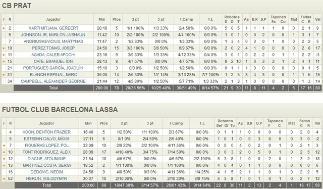 Sabían los integrantes del CB Prat que el reto de la clasificación copera no iba a ser un objetivo sencillo pero, pese a ello, los catalanes lo dejaron todo sobre la pista llegando a ser virtual equipo de Copa durante varios minutos del partido. Un choque en el que comenzaron con paso firme durante sus primeros minutos maniatando a un FC Barcelona al que le costó entrar en partido (20-10). Poco a poco, los hombres de Alfred Julbe fueron ganando protagonismo ante un CB Prat que, consciente de la victoria de Manresa, apretó en el partido llegando a contar con 16 puntos de renta con los que intentar la hazaña de poder remontar el average de 25 puntos en su contra (53-37). Lejos de dejarse llevar por el marcador, un FC Barcelona que ha ganado en madurez, logró meterse de nuevo en partido con una buena defensa y serios partiales que llegaron incluso a poner en peligro la victoria local. Los de Arturo Álvarez apretaron en su juego y no dejaron escapar un triunfo que, pese a no ser suficiente para la Copa, dejó a los potablava virtualmente salvados con 13 triunfos en 17 jornadas. Todo un récord para el club catalán (78-69).