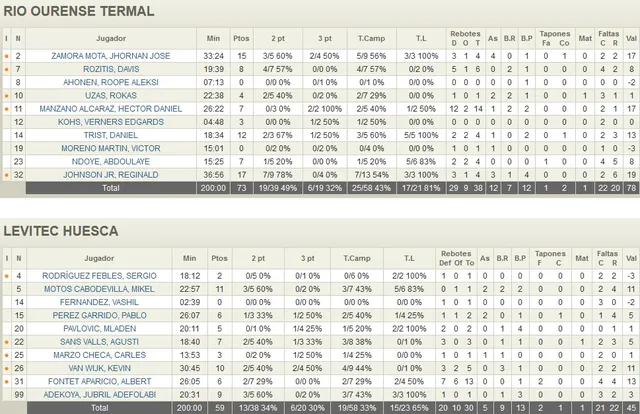 Segundo triunfo consecutivo para un Rio Ourense Termal que sigue dando pasos al frente durante las últimas jornadas. Y es que, el alivio vivido durante la pasada semana en Palma de Mallorca ha encontrado la continuidad necesaria sobre la cancha del Pazo con un triunfo de equipo ante un Levitec Huesca que se vio sorprendido de inicio por los locales (20-14). Pese a las bajas en su juego, los de Gonzalo García se apoyaron en el soplo de aire fresco con el que Jhornan Zamora ha contagiado a un equipo que contaba ya con una renta de siete puntos al descanso (39-32). Fue tras el paso por vestuarios cuando los ourensanos reforzaron su juego con un nuevo parcial con el que sejar la victoria realmente cerca (56-43). Así, los gallegos tan sólo tuvieron que esperar al bocinazo final para sumar la segunda consecutiva con la que dar un nuevo pasito hacia la permanencia (73-59).