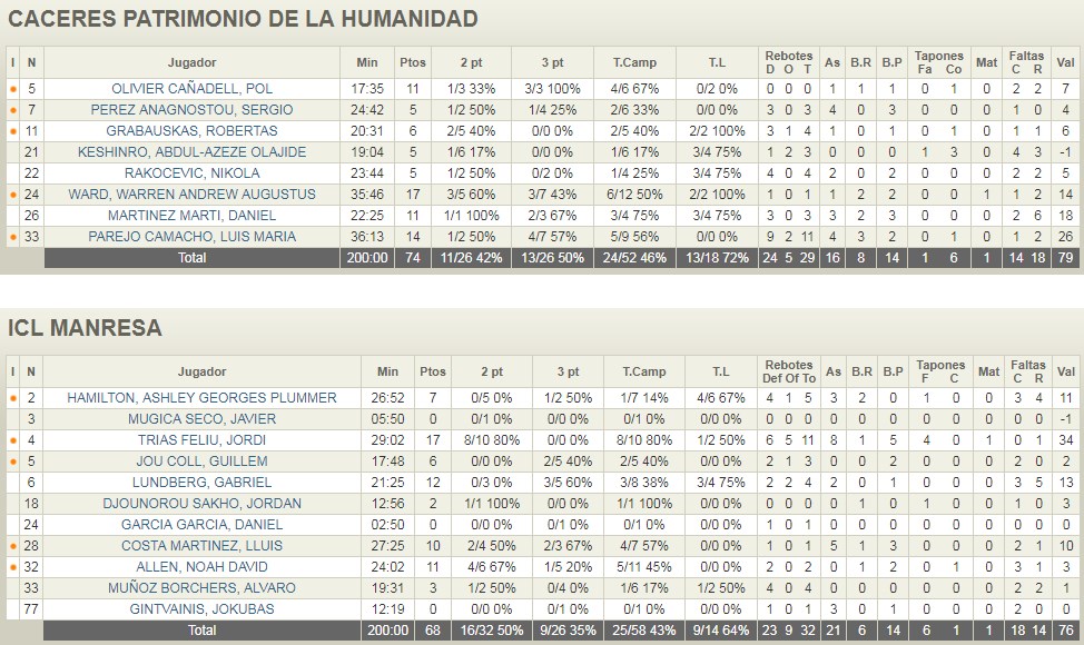 No puede considerarse sorpresa, porque en Cáceres han caído en las últimas semanas el Melilla Baloncesto y el Trapa Palencia. Este viernes la víctima fue un ICL Manresa que llegaba con el pasaporte para la Copa Princesa recién conseguido. Y eso que al descanso parecía un choque controlado por los visitantes, con un Jordi Trías espectacular en los primeros 20 minutos (11+5+6). Pero con una rotación corta, los de Ñete Bohigas tiraron de compromiso defensivo y orgullo para ir recuperando desventaja apoyados por el gran capitán Luis Parejo (terminó con 14+11) y un Warren Ward muy acertado. Desde los 6.75 (el Cáceres anotó más triples que canastas de dos) certificó la victoria aguantando la diferencia que obtuvo al comienzo del último cuarto.