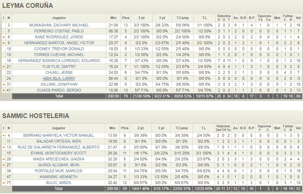 KIT DE SUPERVIVENCIA. La DGT sugería en su cuenta de Twitter que sería conveniente que los conductores llevasen un kit de casi 20 objetos para situaciones de emergencia como las vividas en las carreteras los últimos días. El Leyma tuvo esta noche su kit particular que sólo constó de dos objetos, sus pívots Edu Hernández Sonseca, auténtico bastión defensivo de los naranjas, y Sergio Olmos, el estilete ofensivo. El madrileño se adueñó de la zona con sus brazos interminables y su saber estar y el alicantino lo relevó para martillear el aro rival. Entre ambos sumaron 18 de los 32 puntos que el Leyma consiguió en los primeros 20 minutos. Mientras, los vascos no encontraban el camino de la canasta y firmaban un desastroso 0/8 en triples y un no menos malo 3/9 en tiros libres. Sólo las pérdidas de balón (9 en la primera mitad) impedían que los anfitriones rompieran el partido. El resultado al descanso fue de 32-23.