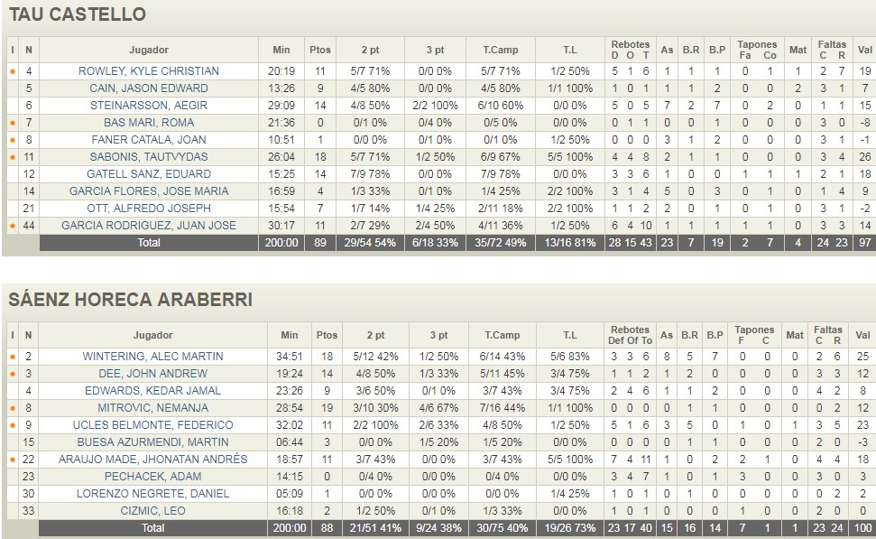 Partido entretenido el jugado en el Ciudat de Castelló con un primer tiempo en el que los locales se fueron a los 56 puntos en un gran espectáculo anotador; con un segundo tiempo muy bien trabajado por un Sáenz Horeca Araberri que tuvo la victoria en su mano; y unos últimos segundos de auténtico vértigo. La presencia de Tuty Sabonis al tres hacía daño a los vitorianos, que se encomendaban a la velocidad y el tiro de Alec Wintering para no irse del partido. A base de defensa se colocó por delante en el marcador y llegó al último minuto dominando el choque. Un triple de Alfredo Ott a falta de 34 segundos parecía decisivo, pero un 3+1 de Mitrovic volteaba el marcador. Rowley capturaba un rebote ofensivo y era objeto de una falta antideportiva. Uno de los dos tiros dentro y 10 segundos de juego para que Aegir Steinarsson lanzara una bomba que entró rebotando varias veces en el aro del Araberri. Sexta victoria consecutiva en casa del equipo de Toni Ten que se coloca con 10-8 en puestos de playoffs.