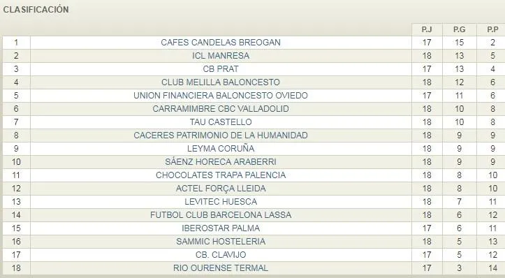 RESULTADOS JORNADA 18 LEB ORO