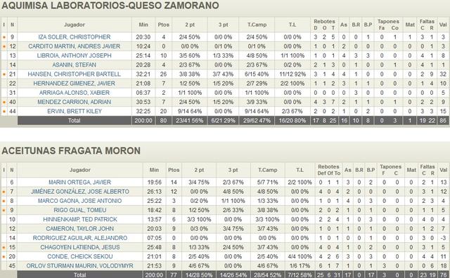 Pocas esperanzas tenían los aficionados del Ángel Nieto cuando a 20 segundos del descanso Orlov ponía el 29-42 en el marcador. El colista Aquimisa Queso Zamorano no estaba acertado en ataque y su confianza no parecía estar en su mejor momento. Sin embargo, el partido cambió radicalmente en el inicio del tercer cuarto. Un triple de Javier Hernández ponía el 47-44 (parcial de 18-29 y el partido era otro distinto. Con el marcador igualado, los dos equipos jugaron su mejor baloncesto, aunque la pequeña ventaja local fue decisiva en los minutos finales.