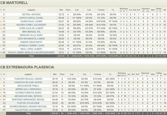 La clave: Un 62% en tiros de 2 y un 93% en libres para un CB Martorell que tiró de talento ofensivo para salvar uno de los partidos más importantes de este principio del año. Xavi Guirao (20 puntos y 30 de valoración), su mejor hombre.
