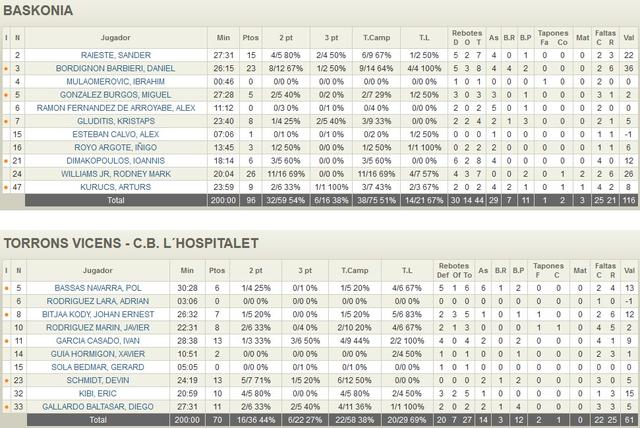 El que va perdiendo algo de fuelle es el Torrons Vicens-CB L'Hospitalet, que encadenó su tercer triunfo seguido ante un Baskonia que empieza a carburar tras sus últimos fichajes.